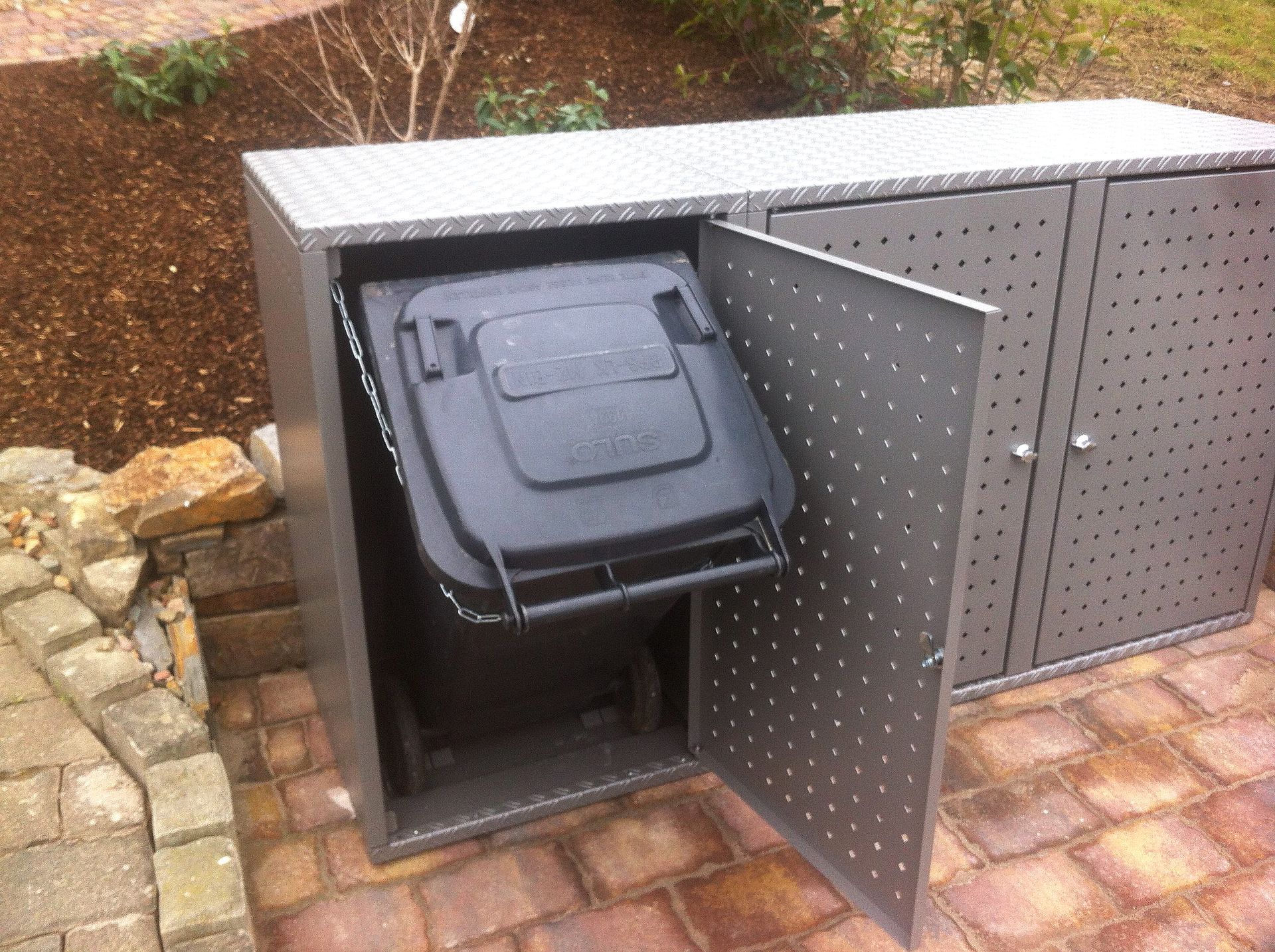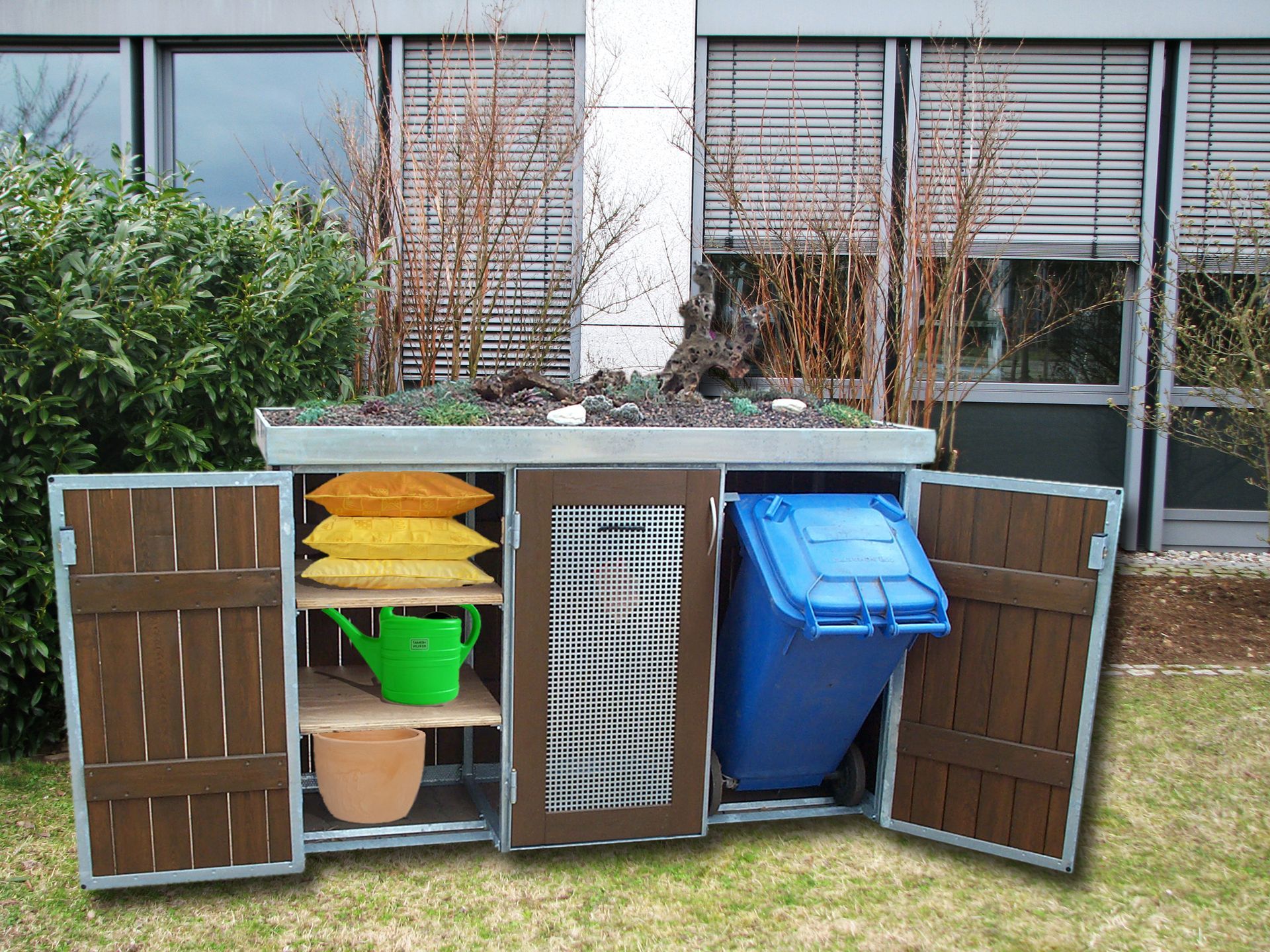 Unsere Mülltonnenschränke sind eine elegante Möglichkeit Ihre Mülltonne aus dem Blickfeld zu verbannen. Die ungeliebte Standard-Plastiktonne verschwindet in einem schönen Mülltonnenschrank und bietet einen tollen Blickfang.